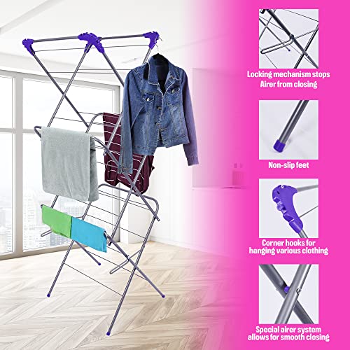 - VERSATILE DESIGN – The airer clothes drying rack is a versatile drying stand that can be used for drying clothes, bedding, socks, towels and other fabrics. The clothes horse indoor comes fully assembled, allowing you to simply unfold it whenever you need to dry clothes.