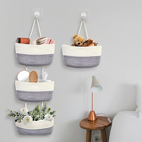 - High-Quality Material: The hanging wall organiser is made of handcrafted meticulously with natural, sustainable 100% cotton woven thread rope. This hanging shelves storage is soft to the touch, free of harmful substances, can be safely stored anywhere, and has a sturdy construction for multiple uses
