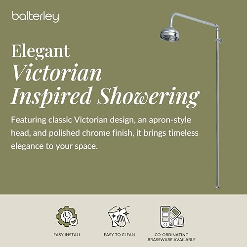 Balterley Shower Riser Rail Kit, Round Showerhead Rigid Shower Riser Kit, Traditional Rigid Rail Risers for Bathroom Showers, Bathroom Rails for Showerhead – 100 x 570 x 1025mm (Chrome)