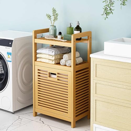 Bamboo Bathroom Storage Cabinet with Laundry Hamper – Freestanding Floor Organizer for Efficient Space-Saving Design