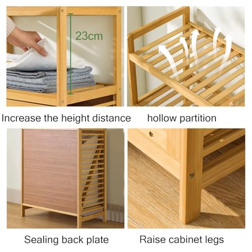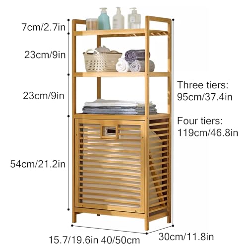 Bamboo Laundry Hamper Cabinet – Tilt-Out Basket with Open Shelf for Organised Storage in Bathroom, Bedroom, and Laundry Room