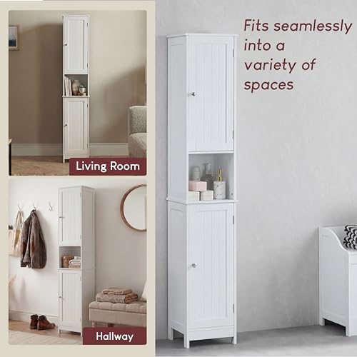 Bath Vida Priano Bathroom Cabinet Storage Cupboard Floor Standing Wooden Tallboy Unit, White