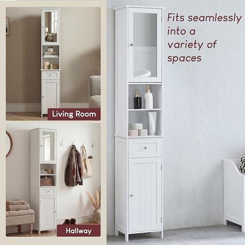 Bath Vida Priano Tall Mirrored Bathroom Cabinet Storage Cupboard Floor Standing Tallboy Unit, White