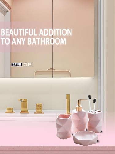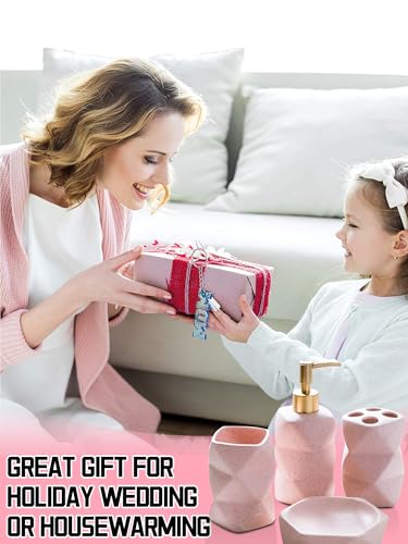 Bathroom Accessory Set,4 Pcs Pink Bathroom Accessories Sets,Soap Dispenser & Soap Dish & Toothbrush Holder & Tumbler,Modern Bathroom Decor,Housewarming Dormitory Apartment Home Essentials