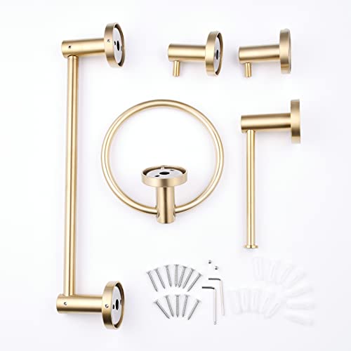 Bathroom Hardware Accessories Set 5-Piece – Adjustable 33-60CM Towel Rail Toilet Roll Holder Towel Ring 2Pcs Towel Hooks – Brushed Gold Wall Mounted SHUNLI
