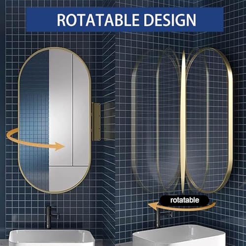Bathroom Mirror Swivel Corner Mirrorwith Metal Frame,Oval Wall Mirror Makeup Mirror With Swivel Bracket,Wall-Mounted Mirrors For Corner Bathroom(Black,W30xL50cm)