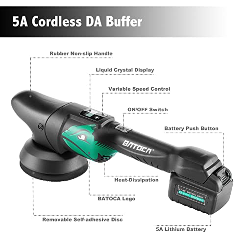 BATOCA S2 Cordless Car Polisher Buffer Sander Dual Action Orbital Polishing Machine DA Polish Kit with 2X 12V 5Ah Battery 5inch Pad for Car Floor Boat Polishing Sanding Cleaning 6 Speeds 2000-4500RPM