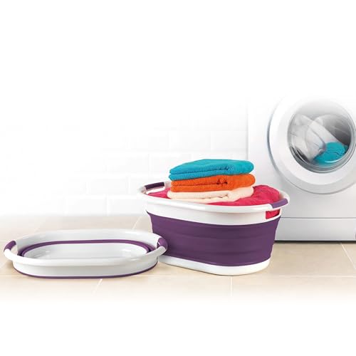 Beldray LA034816PUR Collapsible Laundry Basket – Foldable Clothes Basket, 37 L Washing Tub, Large Collapsible Laundry Bin with Carry Handles, Pop Up Laundry Hamper, Ideal for Camping/Festivals, Purple