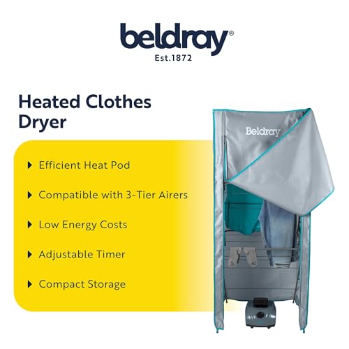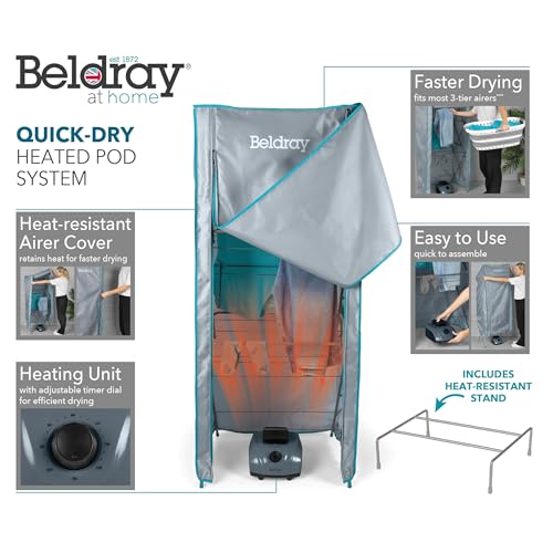 Beldray Heated Pod Drying System – Convert 3 Tier Airers To A Heated Clothes Airer, Hot Air Circulation, Compatible with Most 3 Tier Airers (65 x 55 x 145cm), Fast Drying, Low Run Costs, LA034290UKF