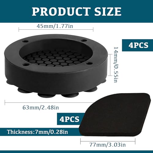 - 【Strong Suction Cup Design】: Featuring 19 unique suction cups on the bottom, 4 of anti-vibration mat provides robust adsorption, securing your washing machine in place and preventing any unwanted sliding