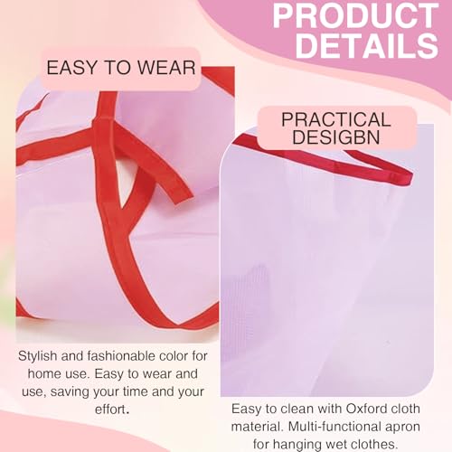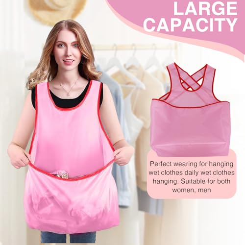 Bettinay Laundry Apron with Pockets, Pink Waterproof Clothes Drying Apron, Large Capacity Oxford Cloth Sleeveless Aprons