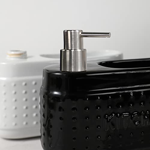 Black Dish Soap Dispenser with Sponge Holder, Large Capacity Ceramic Liquid Soap Dispenser for Kitchen Countertop-600ml
