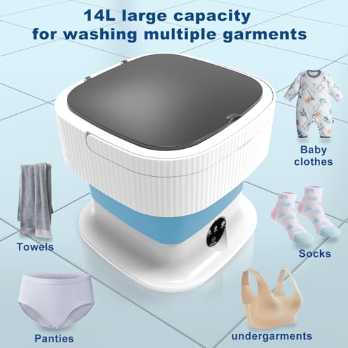 • LARGE CAPACITY: This portable washing machine has a 14L capacity, making it perfect for washing essentials like underwear, socks, and even baby clothes at once.