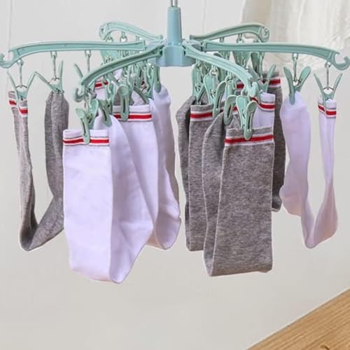 BONYCUST 24 Peg Folding Sock Hanging Rotatable Drying Rack Hanger Sock Dryer for Lingerie Clothes Shoe Insoles Underwear Baby Clothes & Hats (Green)