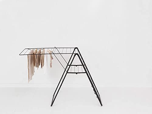 Brabantia HangOn Laundry Drying Rack (25m / Matt Black) Compact, Foldaway, Adjustable Indoor Stainless Steel Clothes Horse