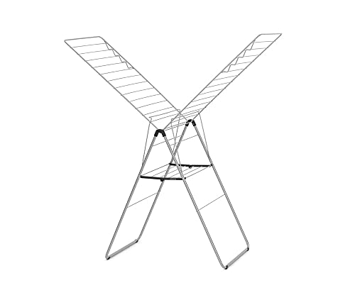 Brabantia HangOn Laundry Drying Rack (25m / Metallic Grey) Compact, Foldaway, Adjustable Indoor Stainless Steel Clothes Horse