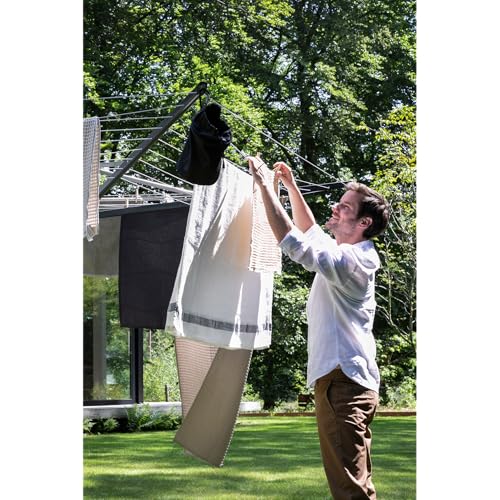 - Easy opening due to the easy to operate ‘Umbrella’ system, With 50 m/164 ft of superb Uv-resistant drying line the rotary dryer can hold up to four machine loads of laundry