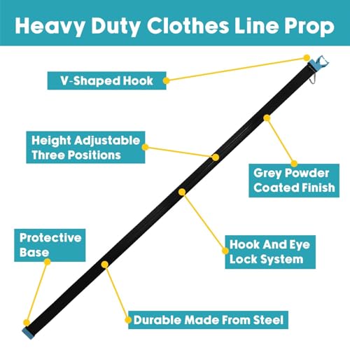 - 𝐃𝐔𝐑𝐀𝐁𝐋𝐄 & 𝐖𝐄𝐀𝐓𝐇𝐄𝐑-𝐑𝐄𝐒𝐈𝐒𝐓𝐀𝐍𝐓: Built to withstand the elements, this clothesline prop features a rust-resistant finish for long-lasting use in your garden, patio, or backyard—rain or shine.