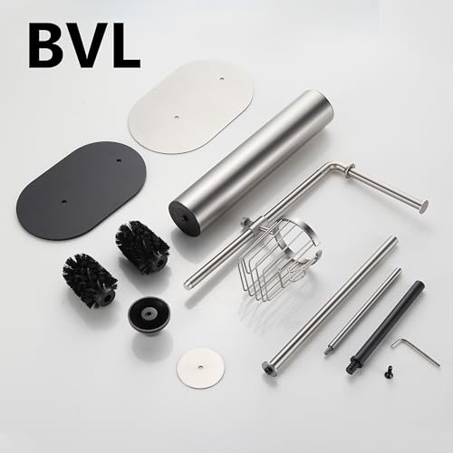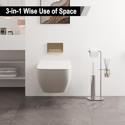 BVL Toilet Paper Holder Standing Birthstetes Nickel, Stainless Steel Toilet Paper Holder Standing and 360° Practical Storage Cor, Toilet Paper Holder with Brush Toilet Brush with Toilet Paper Holder