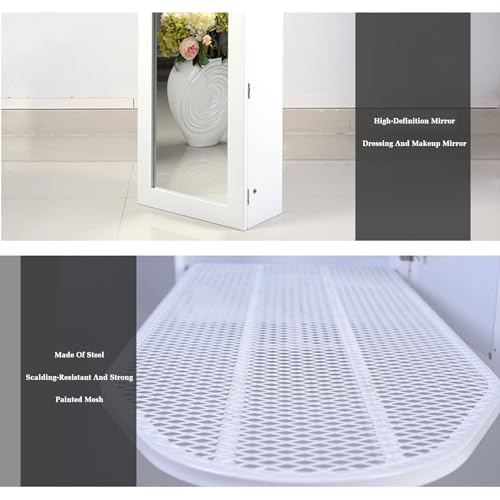 - WITH HD MIRROR AND STORAGE SPACE: The ironing board can not only iron clothes but also be used as a mirror. There are multiple storage spaces in the cabinet to store items