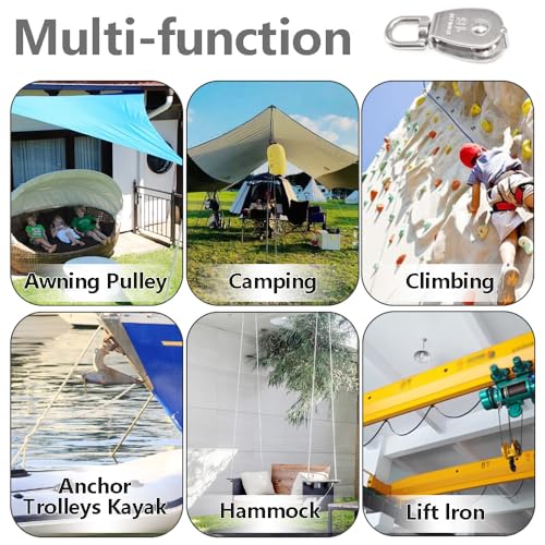 - Uses: Single pulley set for indoor and outdoor ropes or rope systems, widely used for ropes, camping, DIY accessories, fitness and more. Ideal for use in a variety of lifting or rigging tasks.