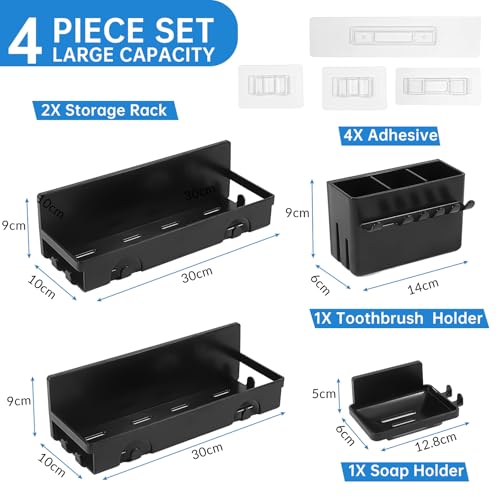 - 4-Pack Shower Caddy No Drill: This bathroom shower caddy includes 2 shower caddies, 1 soap holder, 1 toothbrush holder and 4 adhesive tapes. You can use this 4 pack shower caddy holder for shower shampoo razor toothbrush in the bathroom, kitchen, and anywhere you need extra storage