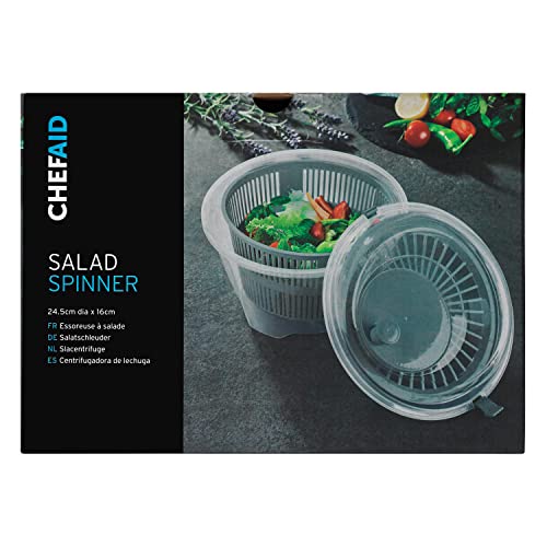 Chef Aid Clear Plastic Salad Spinner & Vegetable Dryer, 4.4 Litre Capacity, Easy Spin Mechanism, 24.5cm x 16cm