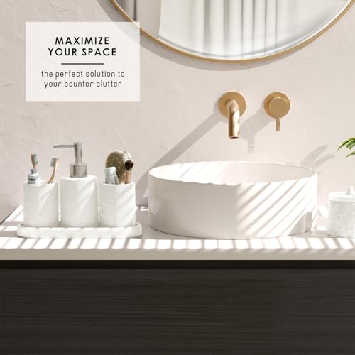 - Versatile for Any Space – Whether in a master bathroom, college dorm, guest bath, or rental apartment, this accessory and vanity set fits seamlessly into your everyday routine. Keep your essentials neat, tidy, and within reach with this coordinated countertop set.