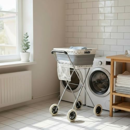 Clarsen® Laundry Basket Trolley with Wheels – Easy to Transport and Hang Laundry – Space-saving and Back-friendly – Laundry Basket Trolley for Laundry Baskets with Dimensions of Approx. 66 x 44 cm