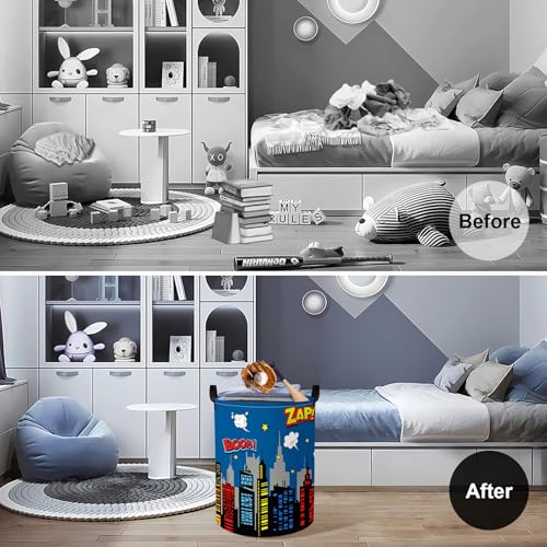 - 🦸 Collapsible Laundry Basket – Clothes basket, storage stuffed animals in kid room, books school supplies in classroom, toys in preschool nursery daycare, dirty clothes in the bedroom