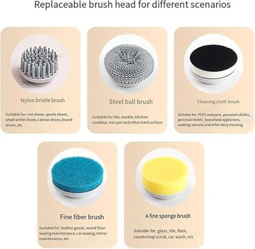 - Electric Cleaning Brush: Electric power spin scrubber scrub brush comeswith 5 cordless clean brushes heads to cope with different cleaning needs, one electric power spin scrubber scrub brush is perfect for all scenarios. Each brush can reach deep into corners and effectively remove grout and stains. Easy to cleanfor cleaning bathroom, all you have to do is hold it, and then it will do all the work for you.