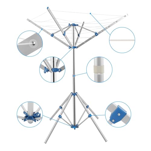- [Efficient Space Utilization] With its rotating 4-arm design, this drying rack maximizes drying space while occupying minimal floor area. Ideal for balconies, gardens, RVs, or small apartments, the adjustable height (1.2-1.6m) accommodates various clothing types, enhancing versatility and usability.