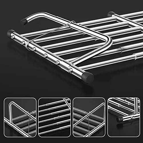 - The drying rack is made of stainless steel. It will not rust, is not afraid of rain, and has a long life even if it is used outdoors for a long time. It can be used on balconies, windowsills, doors, corridors, radiator anti-theft nets or guardrails.
