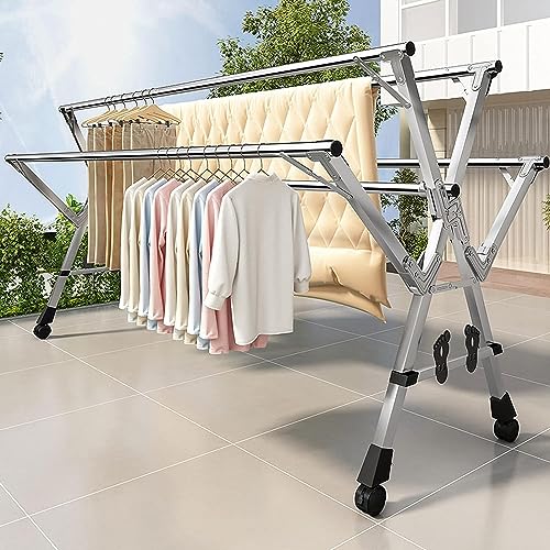 - Sturdy Construction and Large Drying Space: Made of stainless steel for durability, excellent load-carrying capacity, suit for quilts or heavy items, for indoor or outdoor drying.Thickened non-slip caps on the feet protect the floor, make no noise when moving. and it can be used in laundry rooms, dorm rooms, bedrooms and so on