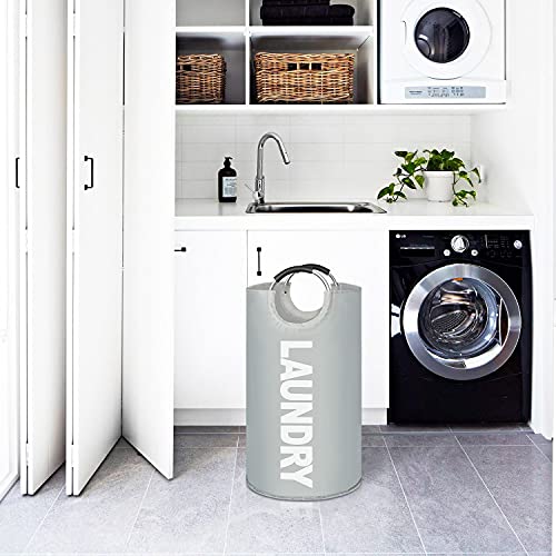 Collapsible Fabric Large Laundry Basket, Freestanding Tall Hamper, Foldable Clothes Bag, Modern Style Folding Washing Bin 6 Colors available 82L (Blue)
