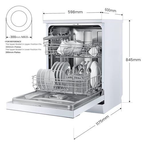 COMFEE' Freestanding Dishwasher FD1435E-W with 14 place settings, Full Size, 44dB, Wide LED Display, Delay Start, Half Load Function, Flexible Racks, White (KWH-FD1435E-W)