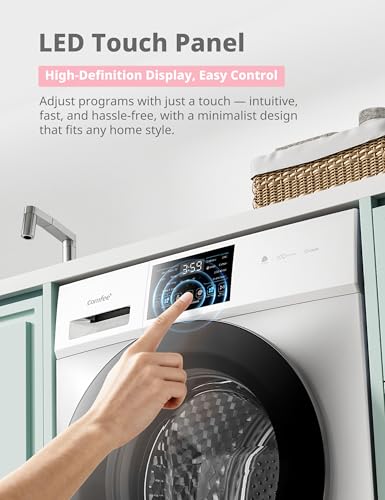 COMFEE’ Freestanding Washing Machine, 10KG Load, A-10% Rating, Steam Care, BLDC Motor, Woolmark, Touch Control Panel, White – CFP03EW100W-UK