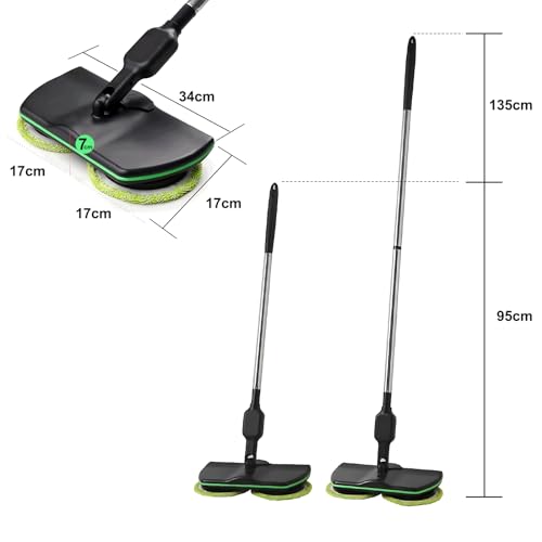 - 【Adjustable Handle】The handle of the electric floor mop cleaner is adjustable from 95-135cm, allowing you to customize the length for your comfort and convenience. You can take the handle off and use electric floating mop to scrub walls and my bath tub.
