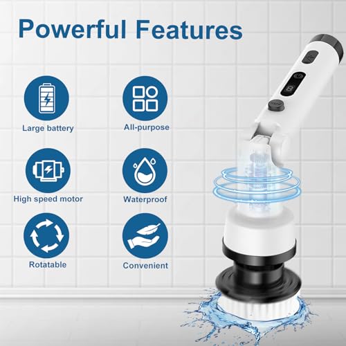 • [9 Multifunctional Cleaning Brush Head] This power washer for cleaning bathroom equipment has different types of 9 brush heads, which are versatile. You can choose different brushes and different cleaning methods, and use this electric bathroom washer at home or outside. It is suitable for curved surfaces, tiles, sinks, toilets, bathtubs and narrow spaces such as door slots, shower trays, car tires and wheels. Our products have the most complete series of replacement brushes to clean every corner of your home.