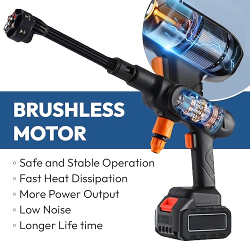 Cordless Pressure Washer – Pressure Washers – for Home, Car, Garden, Patio – 6 in 1 Adjustable Nozzle – 2 Batteries – No Hose Needed – Portable Jet Wash – Upgraded 2025 Version (Black)