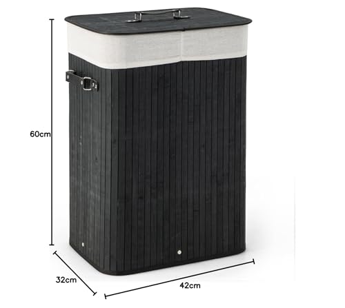 COSTWAY Bamboo Laundry Basket, 72L Collapsible Laundry Hamper with Lid, Handles & Removable Washable Liner Bag, Foldable Dirty Clothes Storage Bin Washing Basket Organiser for Bathroom (Black)