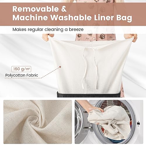 - 【72L Large Capacity with Washable Liner Bag】Measuring with large size, this bamboo laundry basket can easily hold up to 72L of clothing, blankets, towels and more. The laundry bin comes with a removable liner bag that is machine washable, which makes regular cleaning a breeze.