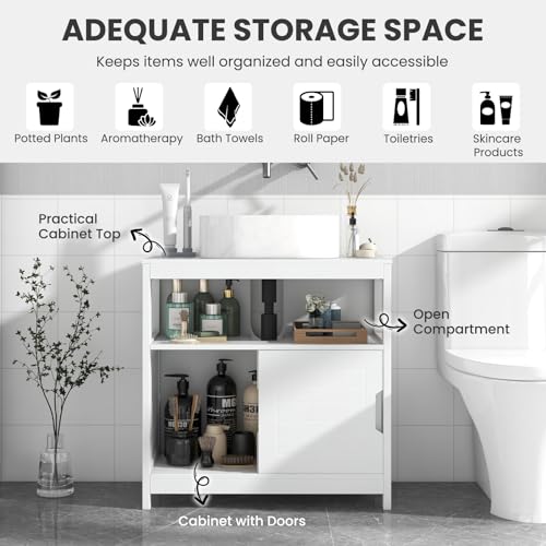 - 【Partitioned Storage Space】This under sink bathroom cabinet comes with a practical cabinet top and an open compartment, offering large storage space to your toiletries, potted plants, aromatherapy items, bath towels, skincare products, and more.