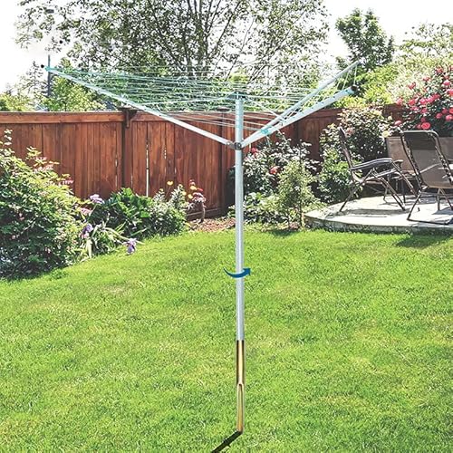 - EASY INSTALL AND ASSEMBLY – Our rotary washing line is perfect for limited outdoor spaces. To assemble the rotary drier, firmly drive the spike into the ground, insert the frame, and you're all set! The rotary airer is easy to set up and use.