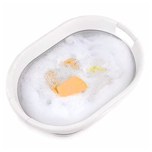Crystals Collapsible Laundry Basket – Large Capacity Washing Baskets Foldable – Pop Up Clothes Basket Folding with Comfortable Grip Handle – Multipurpose Organiser Basket, White/Grey (Oval)