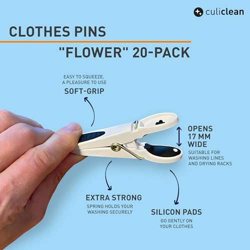 culiclean Clothes Pegs for Washing Line – Strong Soft Grip Washing Pegs "Flower" – Durable Plastic Laundry Peg for Indoor, Outdoor Use – Heavy Duty Clothes Clips – 20 Pack – black-white/white-black