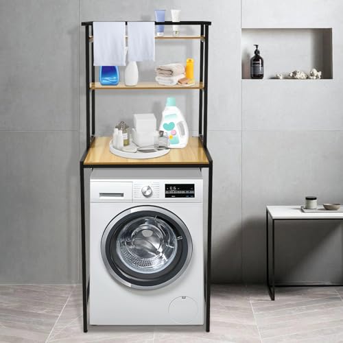 czyuRachel 3-Tier over The Washer Storage Shelf 69 X 60 X 176.5cm, Drum Washing Machine Storage Rack, Space-Saving Solution for Bathroom, Adjustable Laundry Room Shelf, Black+Log