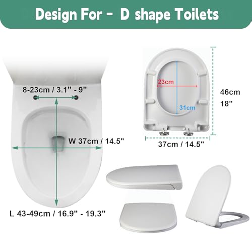 - Our D – shaped toilet seat is suitable for most standard D – shape toilets. Rust – proof stainless steel adjustable hinges guarantee a proper fit; check shape and size before ordering.