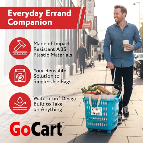 - Carbon Footprint Conscious: Ditch The Plastic Grocery Bags, Go , Go Go Cart. The Go Cart Is The Essential Rolling Basket For Your Trips To The Grocery Store And Farmers Market. Avoid The Plastic Bag, Carry All Groceries With Ease.