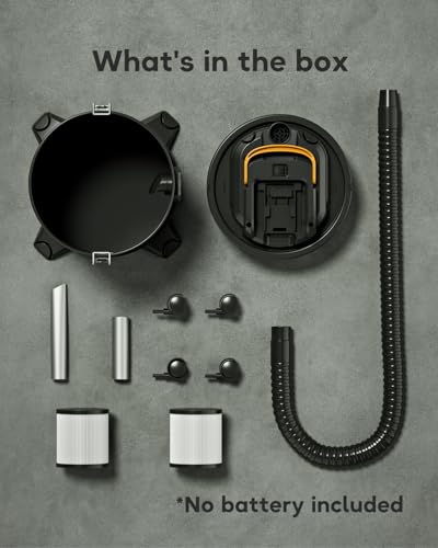 - Accessories included: includes 2 HEPA filters, 37.4 inch metal hose, 6 inch flat round aluminum nozzles. No battery.